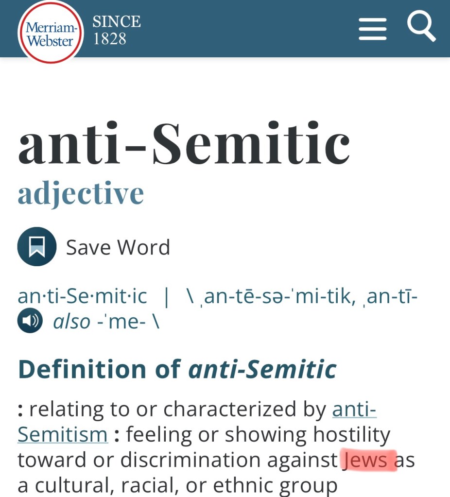As we can see, Merriam-Webster’s dictionary provides the same misnomer (as Britannica called it), defining “anti-Semitic” and “anti-Semitism” as being exclusively against Jews—completely ignoring the Shemitic Afro-Asiatic people. Instead, the focus somehow shifts solely to the so-called European (Japhethic) Jews. What’s especially striking is that, when you really think about it, these modern definitions of anti-Semitism and anti-Semitic are actually anti-SHEMitic! The way these terms are used today directly opposes and erases the true bloodline descendants of Shem—go figure!