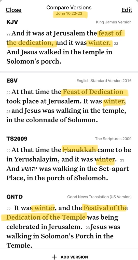 The last link above references other winter pagan celebrations/festivals. Again, Christmas is not a biblical winter celebration, but there is a biblical winter celebration that should be celebrated by those who follow Christ… Why? Because The Messiah Himself made a huge declaration during that winter festival… And what winter festival is it? The festival or feast of Dedication, or as it’s called in Hebrew Hanukkah/Chanukah: