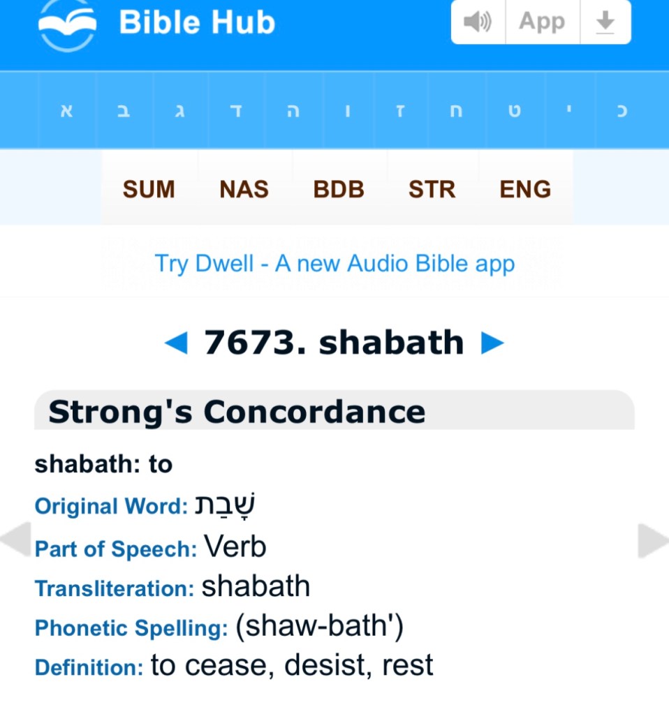 And we will see that even though the translators put “you shall/shall ye celebrate”, the Hebrew word here, is Hebrew word # 7673 “shabath”