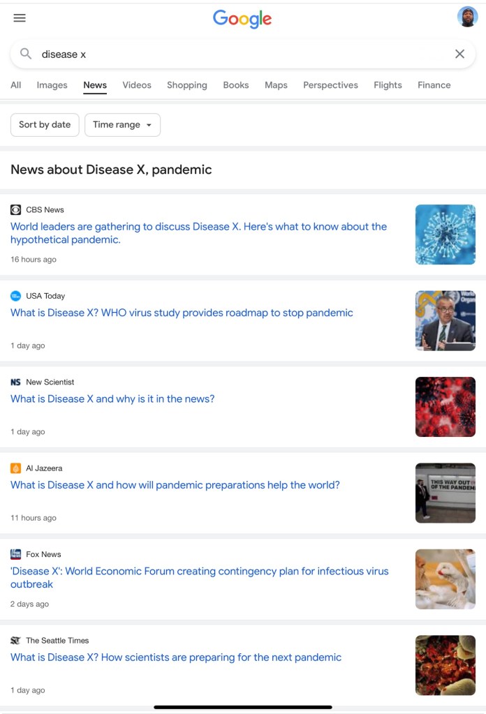 Perhaps you, (like me), might have first heard about “Disease X” a few years back, but did you know that the rulers & powers of the world are actively discussing plans together, right now? Because I didn’t. Yes, they are making plans and decisions pertinent to Disease X for the worldwide population. They are making plans about & for you, without any of your input—they are the rulers after all, it’s what they do, but still… But let them do what they do, because we, those of us who know The Ruler of All Creation, will obey what He instructed us to do! We do not need to fear nor be overly alarmed, just as we covered in the last blog. And at the same time, it doesn’t hurt to be familiar with the large-scale things that are going on around us. For instance, I just did a quick Google of “Disease X”, and check out the headlines: