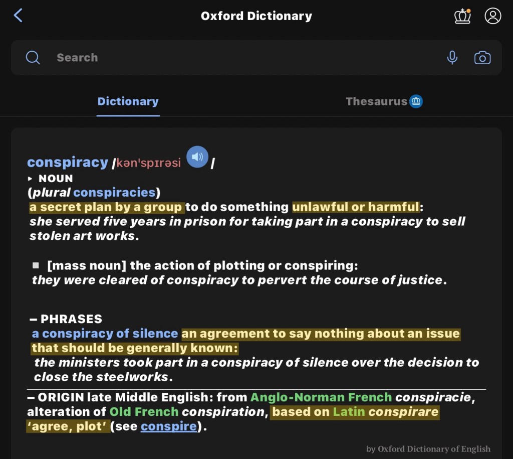 As we continue, we will not be talking about the scientific/mathematical definition of “theory”, so we can get that definition out of the way. Conspiracy theories should be examined, oh yes, we should test all things (see 1 Thessalonians 5:21), and if a conspiracy theory is found to be true, and no longer merely theoretical, it will still be a conspiracy, but instead of being a conspiracy theory, we could call it a conspiracy fact or conspiracy truth… or better yet, just call it a conspiracy. Again, we are not talking about scientific or mathematical theorem proving, we are talking about conspiracies, and for us especially, those pertaining to our culture and courts of public opinion.