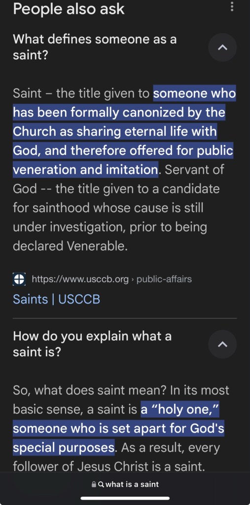 If you ask people to define what a saint is, you’ll often hear responses rooted in tradition and misconceptions, some common notions like the ones we will read in the screenshots below. So first, let’s take a quick look at these prevailing views before we test them against the truth revealed in Scripture: