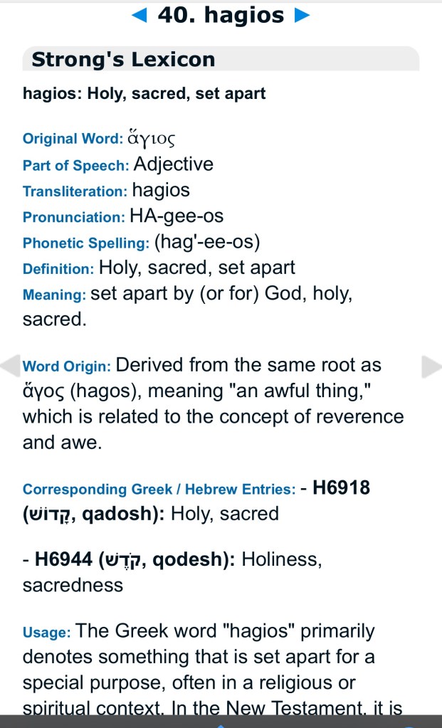Now, let us look at a couple of Hebrew words and a single Greek word because they are among the most frequently used words that are translated into the English word “Saint” in English translations of The Bible: