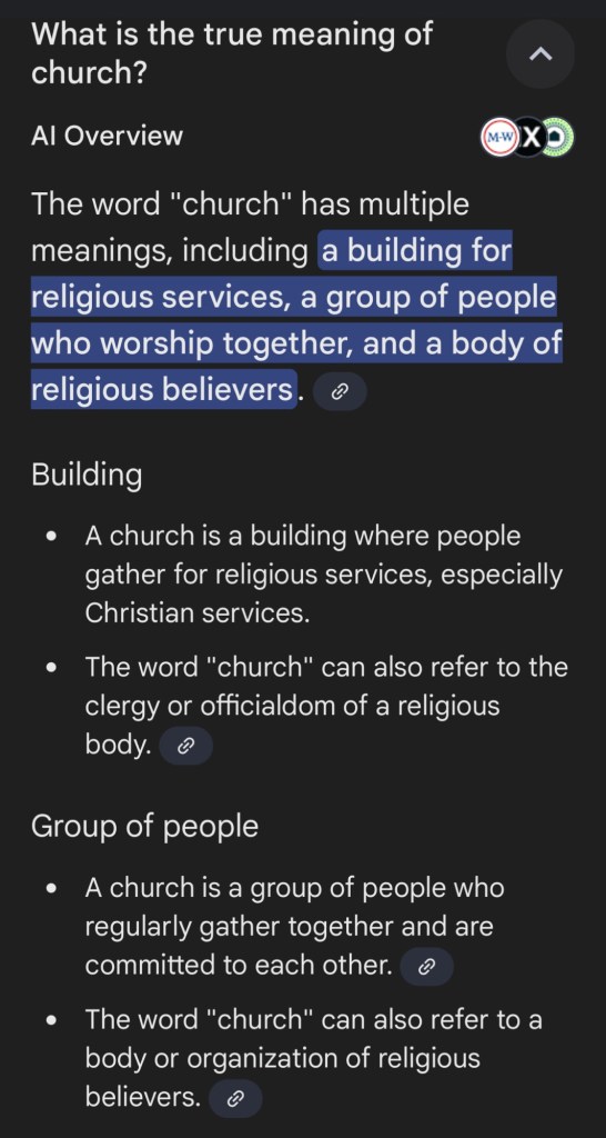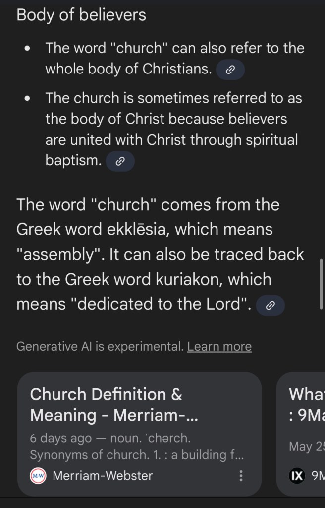 If you ask people to define what the church is, you’ll often hear responses rooted in tradition and misconceptions, some common notions like the ones we will read in the screenshots below. So first, let’s take a quick look at these prevailing views before we test them against the truth revealed in Scripture: