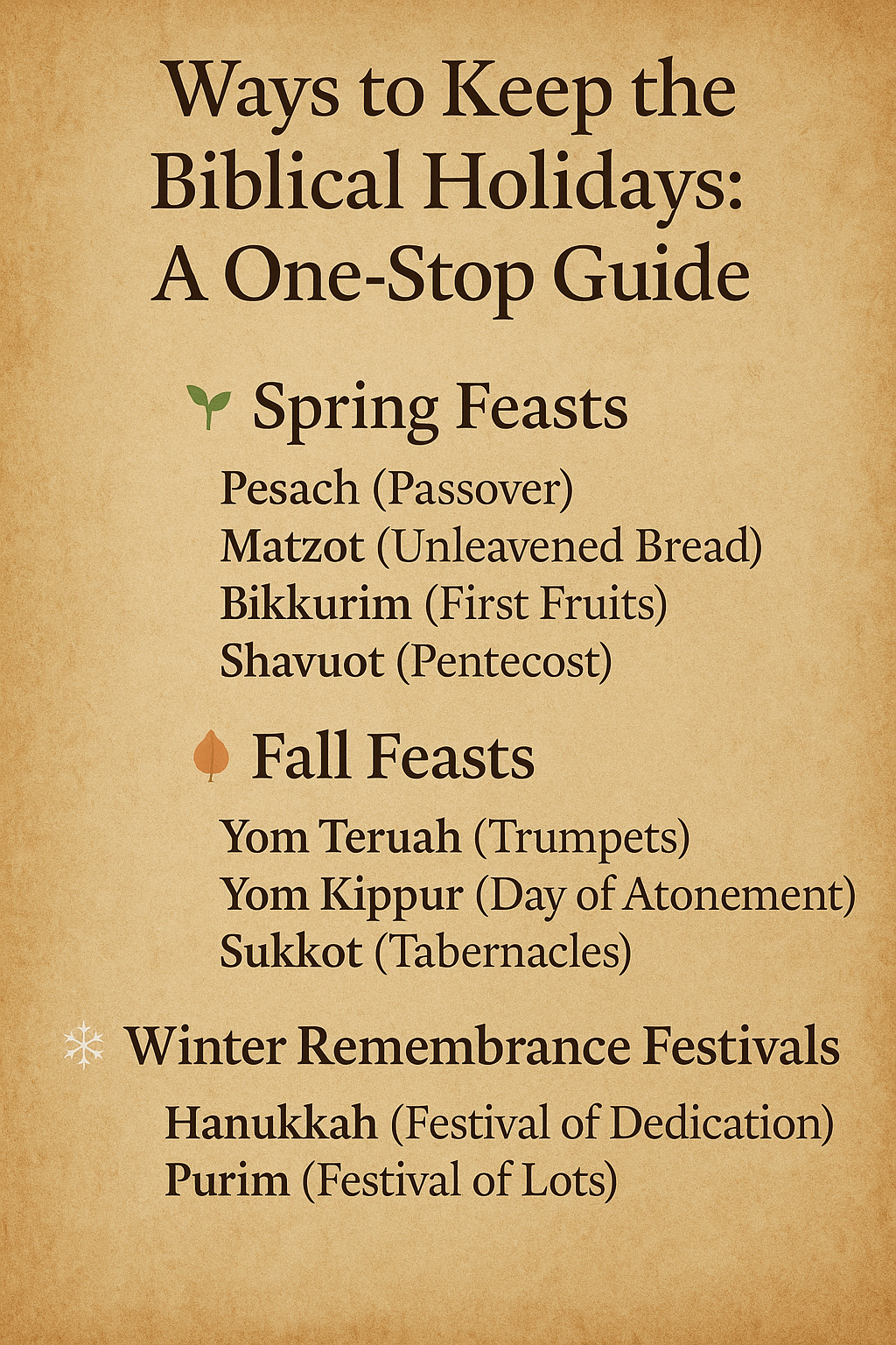Every now and then, family or friends ask me, “Why don’t you celebrate holidays?” I usually smile and reply, “Oh, I do! I celebrate all the holidays that are found in the Bible.” If you’ve ever wondered the same thing—or been asked this question—this is for you. Feel free to share it with others! YAH … Continue reading Ways to Keep the Biblical “Holidays”/Holy Days: A One-Stop Shop